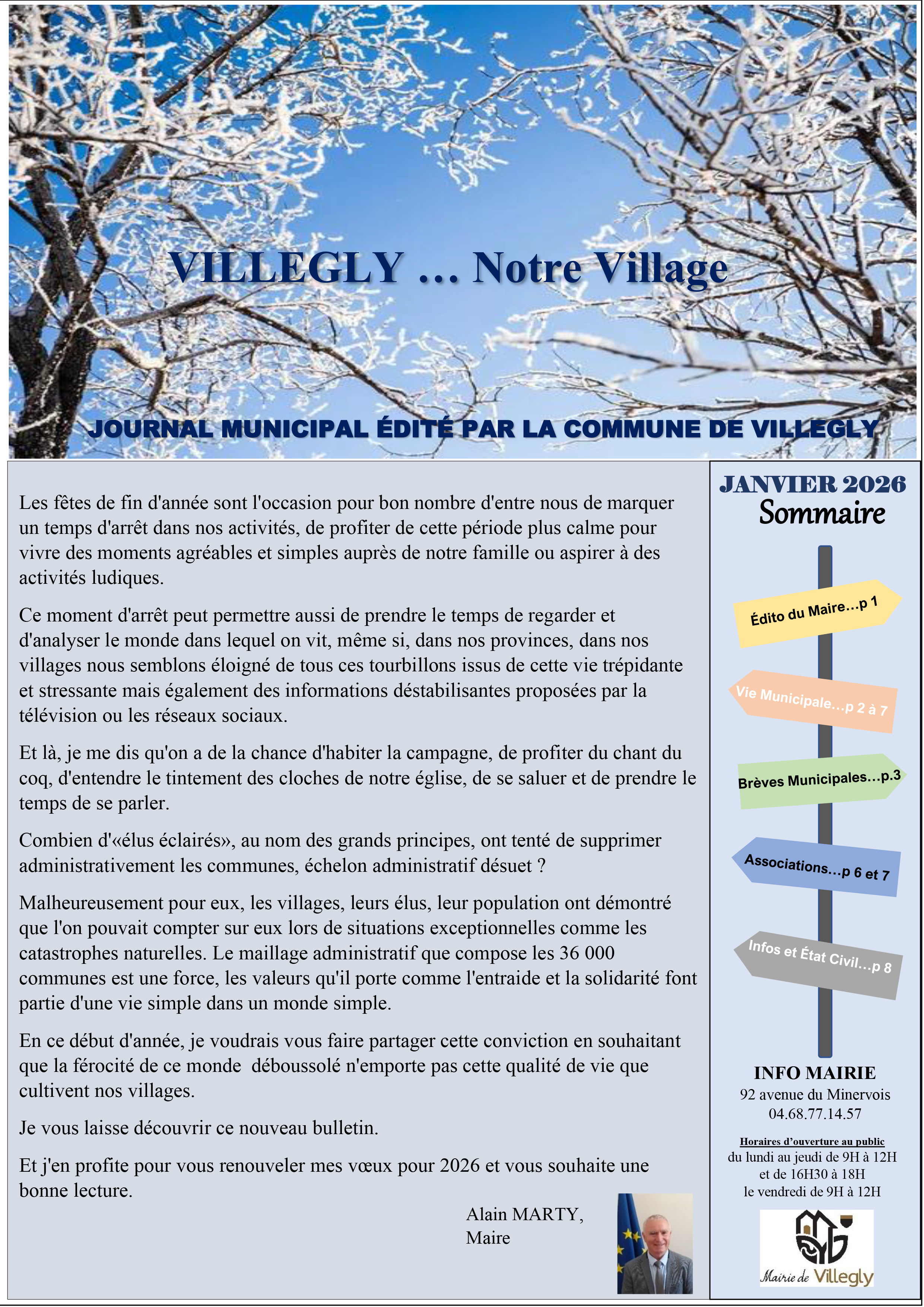 Le bulletin municipal N° 33 du mois de janvier 2026 est disponible sur notre site internet à la rubrique "Pratique" "bulletins municipaux", Pour ceux qui ne possèdent pas internet, des exemplaires format papier sont disponibles au secrétariat de mairie. Bonne lecture à tous !