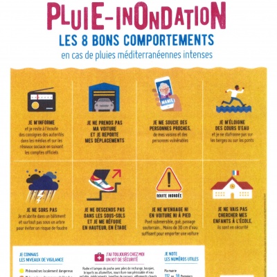 Les bons gestes à adopter lors d'évènements météorologiques : fortes pluies, inondations.