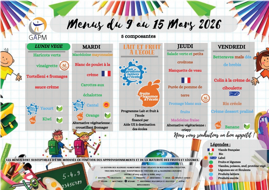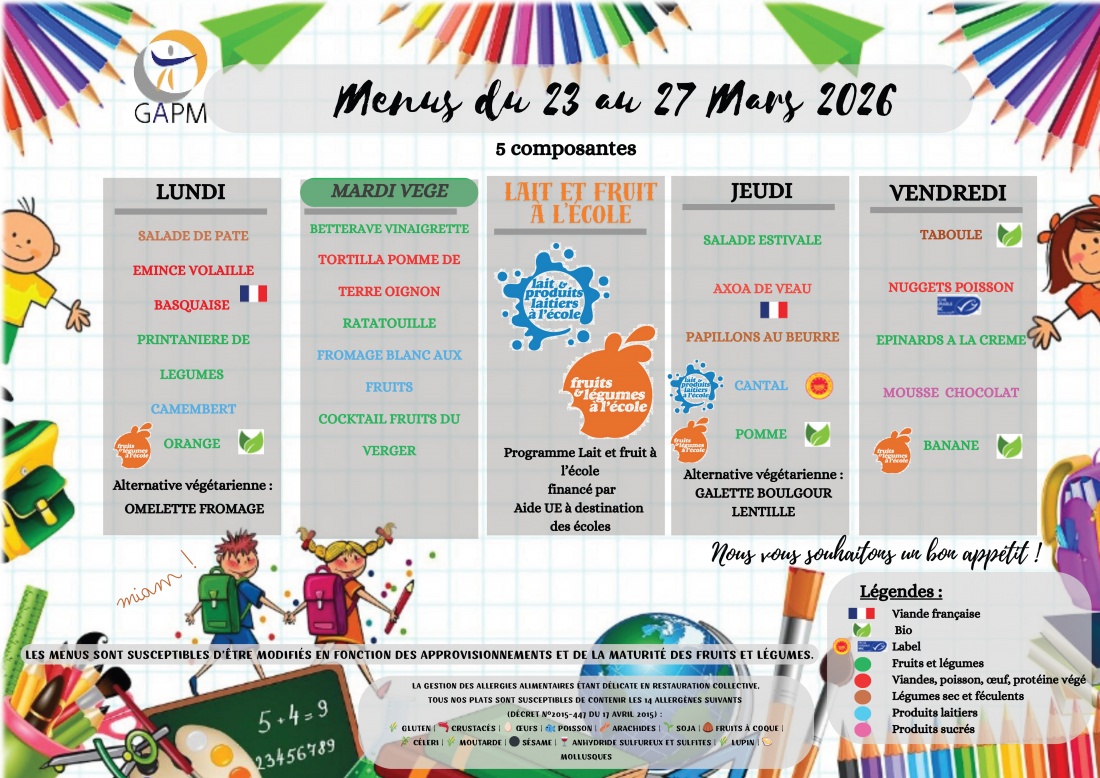 MENUS CANTINE SCOLAIRE